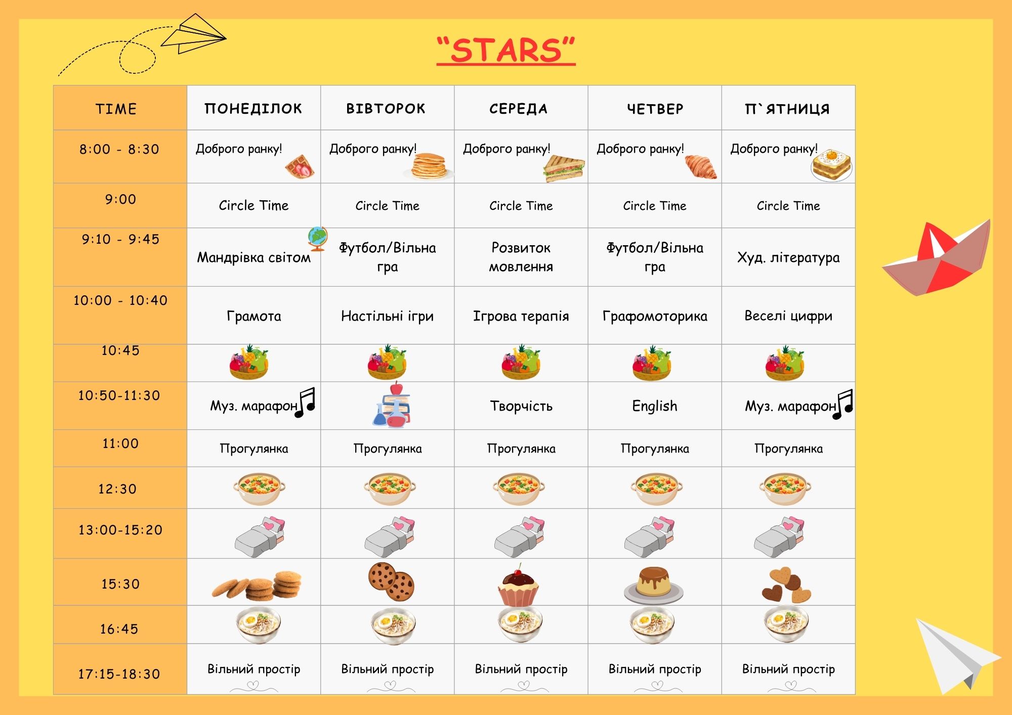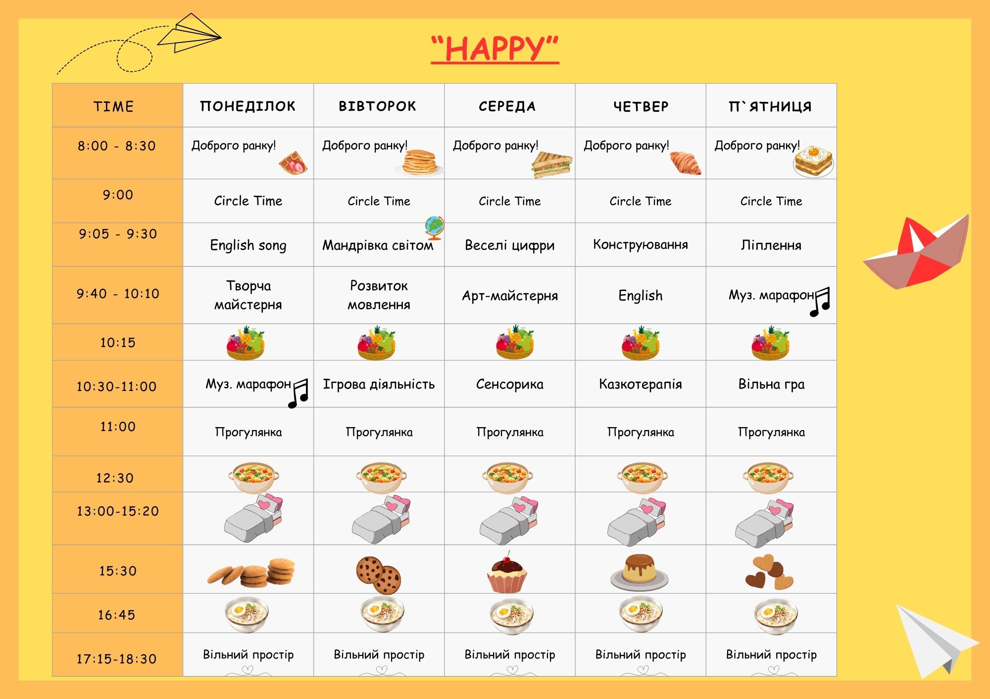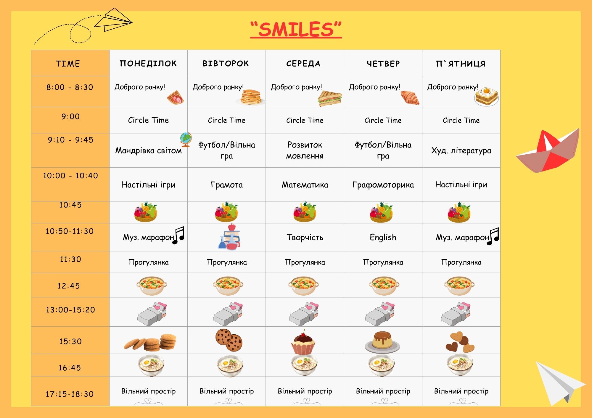 Розклад занять садочку по вул. Олега Мудрака 66